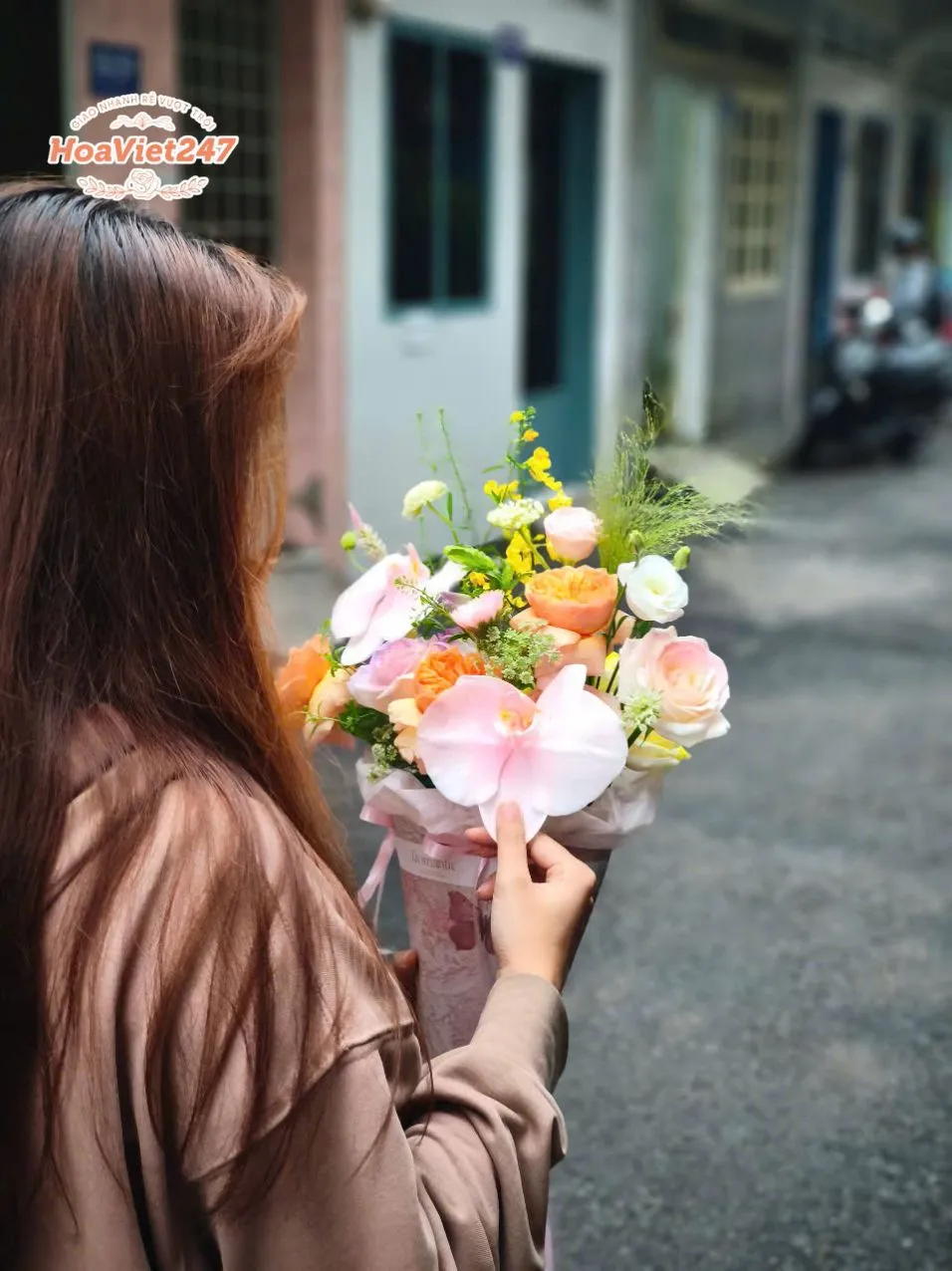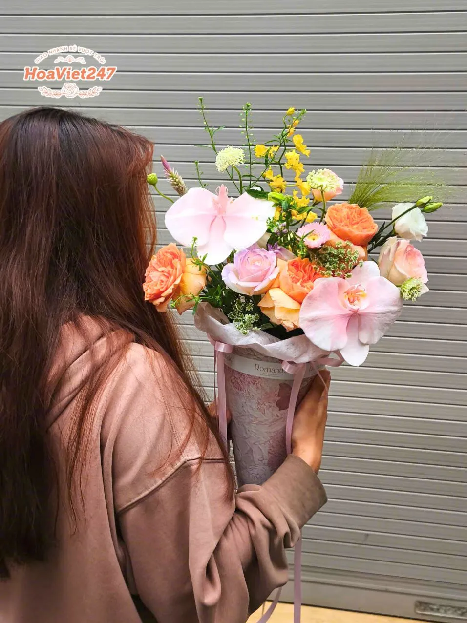 Bó Hoa Kem Hiện Đại BH128 gây ấn tượng bởi tông màu rực rỡ, sang trọng nhưng vẫn toát lên vẻ ấm áp, tinh tế. Sự kết hợp hài hòa giữa hoa hồng kem, hồng cam và lan hồ điệp dáng hiện đại tạo nên tổng thể mềm mại, thanh khiết, phù hợp tặng sinh nhật, khai trương, ngày kỷ niệm hay gửi lời cảm ơn trang nhã.