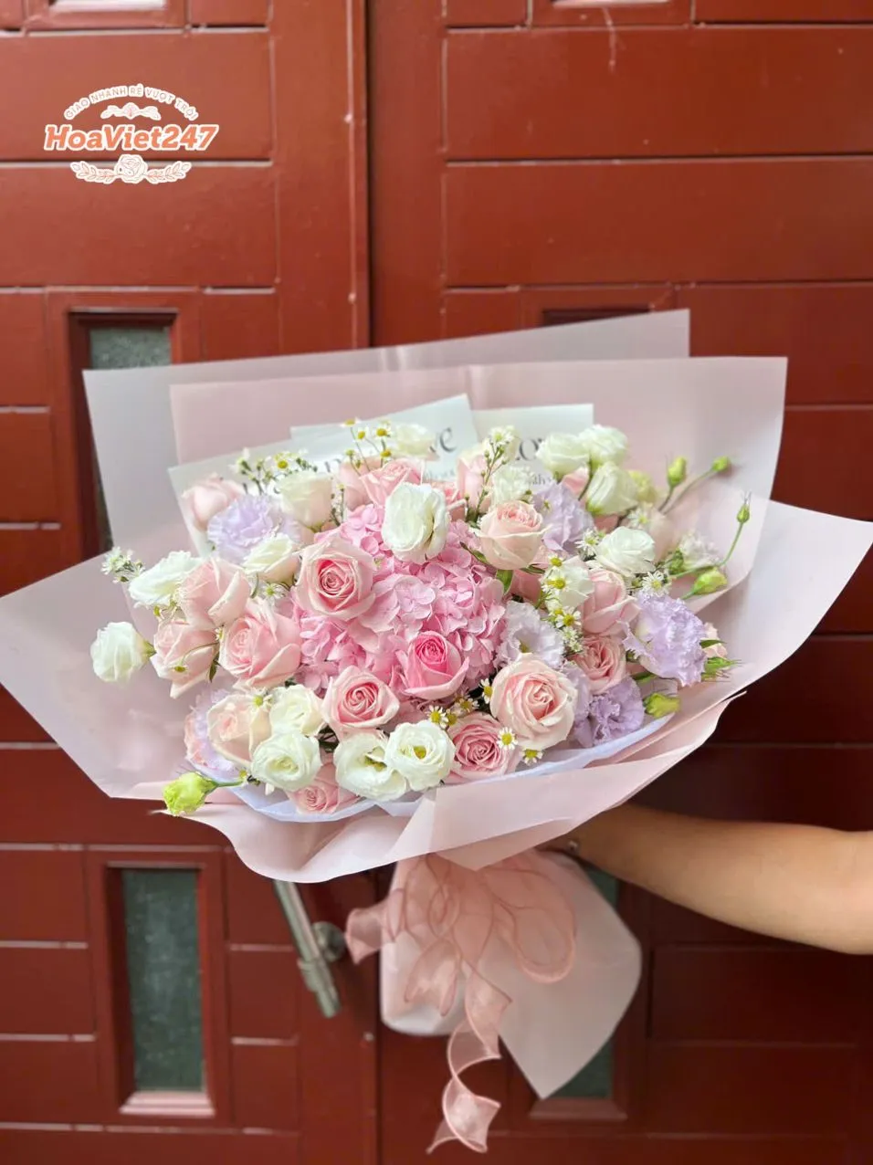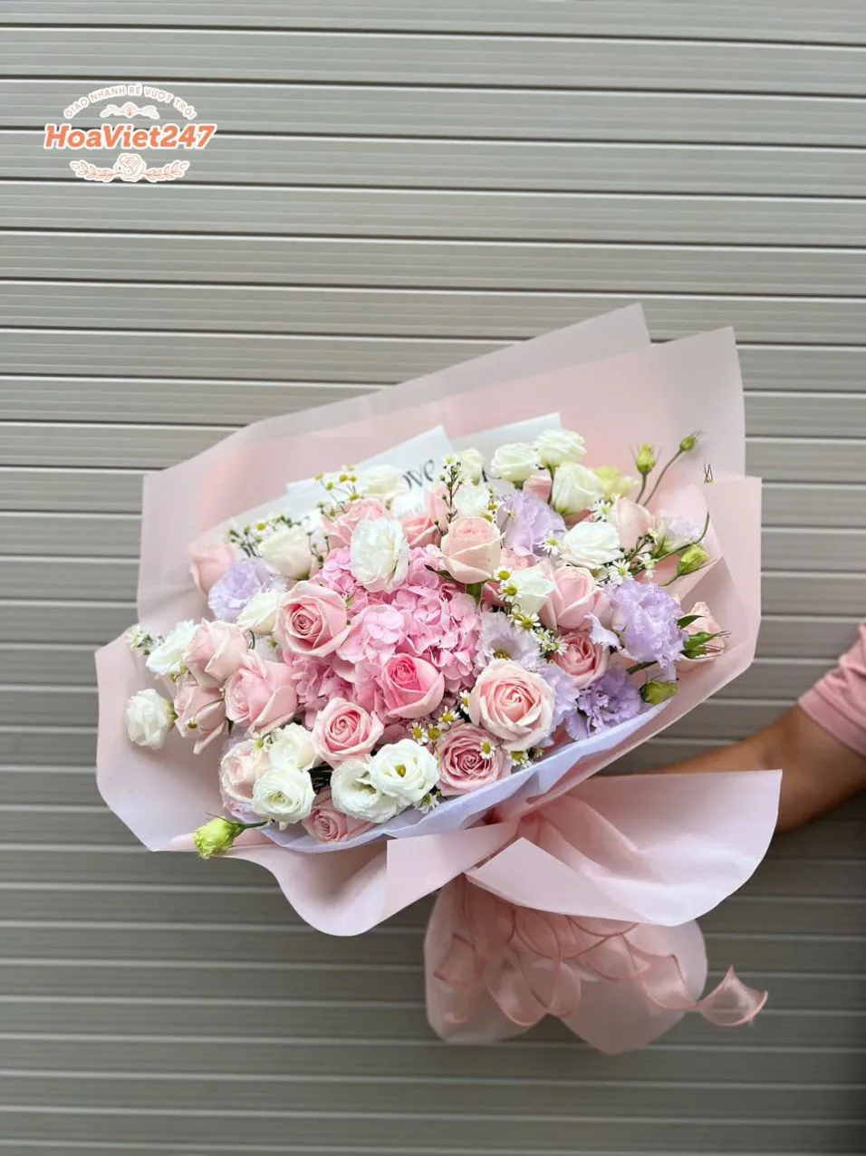 Bó Hoa Hồng Pastel Hiện Đại BH129 mang vẻ đẹp ngọt dịu như kẹo dâu, kết hợp tinh tế giữa cẩm tú cầu hồng mềm mại và hồng kem pastel sang trọng. Từng lớp hoa hòa quyện với sắc hồng kem trẻ trung, tạo nên cảm giác trong trẻo, lãng mạn nhưng vẫn đầy hiện đại. Thiết kế form bó Âu cao cấp giúp tổng thể trở nên hài hòa, thanh lịch, phù hợp tặng sinh nhật, kỷ niệm, ngày đặc biệt hoặc gửi lời yêu thương nhẹ nhàng đến người bạn trân quý.